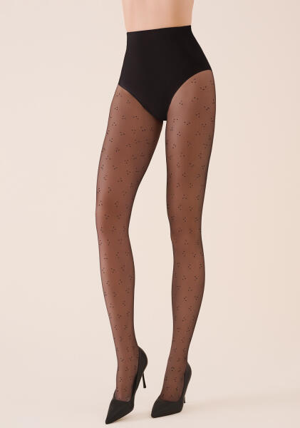 Női harisnya - vastagsága 20 den - finom minta - láthatatlan megerősítés a csúcsokon - külön nadrágrész nélkül - lapos varrás, pamut szegély - Elasztikus szálak Összetétel: 84% poliamid, 15% elasztán, 1% pamut