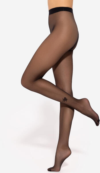 Női harisnya 20 nap Kötött elasztán fonalból készült Matt A vádlikon tetoválást imitáló minta szívvel Finom megerősítés a hegyeken Jelzett nadrágrész nélkül, kis ékkel Összetétel: 89% poliamid, 11% elasztán