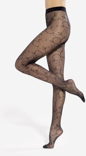 Női harisnyanadrág, 20 den - kötött elasztán fonalból készült - matt - szemet gyönyörködtető minta - megerősítés a csúcsoknál - jelölt bugyi rész nélkül - nagy ék Anyaga: 87% poliamid, 13% elasztán
