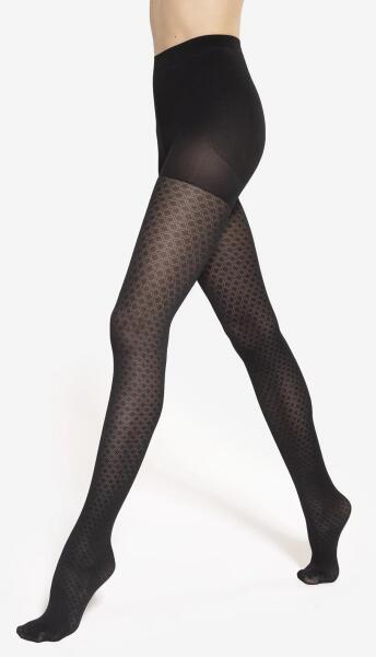 Női harisnyanadrág- 40 den vastagság- a bugyi rész speciális kialakítása, amely megemeli a feneket és formálja az alakot- push-up hatás- kis ék- mintásÖsszetétel: 87% poliamid, 12% elasztán, 1% pamut