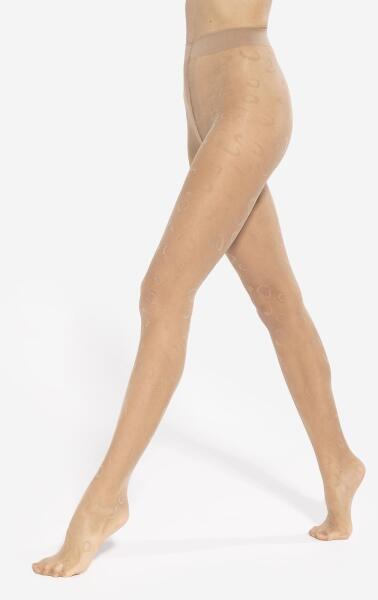 Női harisnyanadrág, 20 den - kötött elasztán fonalból készült - matt - szemet gyönyörködtető minta - megerősítés a csúcsoknál - jelölt bugyi rész nélkül - kis ék Anyaga: 89% poliamid, 11% elasztán