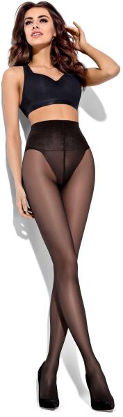Magas derékú harisnyát formázva, 20 den vastagságban elnyomja a pocakot. lapos láthatatlan varratok vannak megerősített derékrész megerősített hegy vastagsága 20 den Anyaga: 92% poliamid, 8% elasztán