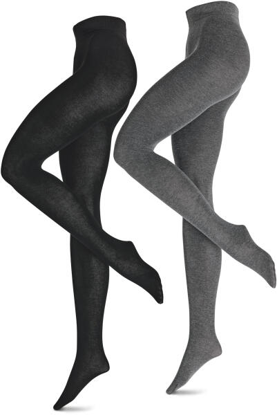 2 pár női kötött harisnya, szürke/fekete Szín: 1x fekete, 1x melírozott sötétszürke ezüstösen csillogó fémszállal Anyag: Fekete: 70% viszkóz (Lenzing), 27% poliamid, 3% elasztán (LYCRA®) Sötétszürke: 69% viszkóz (Lenzing), 27% poliamid, 3% elasztán (LYCRA®), 1% fémbevonatú poliészter Különösen puha anyag viszkózzal1 pár ezüstösen csillogó fémszállalKényelmes szegély – nem vág beLapos varrások44/46-os mérettől kényelmes lépésbetéttelElasztánnal: formatartó, tökéletesen áll, rendkívül kényelmes viseletEzek a harisnyák fenntartható fából készült szálakat tartalmaznak.