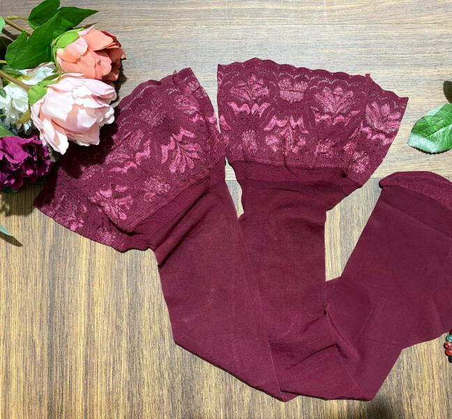 Selyemfényű, szilikonos elasztikus átlátszó combfix , 10 cm széles csipkével. A csipkében 2 sor szilikoncsíkkal készült